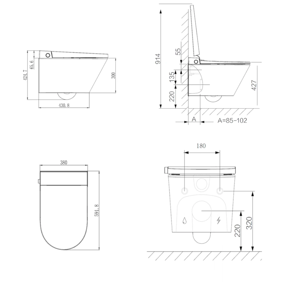 | Įrenginio tipas | Sieninis pakabinamas išmanusis tualetas |